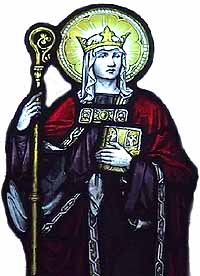 Etheldreda died of a quinsy, which she regarded as a punishment for her former love of dress and, in particular, for having worn jewels on her neck. An incision was made into her throat, by a surgeon who afterwards swore to the healing of the wound after death. Hence her patronage of sufferers of throat complaints. Etheldreda is one of the most popular of English saints, and there are more dedications in her name in England than in that of any female saint of the early Anglo-Saxon Church. Her feast day is the anniversary of her death, 23rd June.